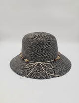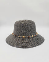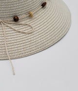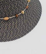 This straw cloche is crafted with a hat tie in wooden beaded cotton string, offering a natural, yet elegant look. Made with the mixed color paper straw, it gives a subtle visual appeal.