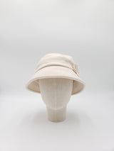 This Wool Blend Cloche is designed with the simple color scheme. It is accented by three beautifully crafted, raw-edge double-layered flowers, each adorned with a delicate bead. Embrace the floral charm and elevate your style this season.